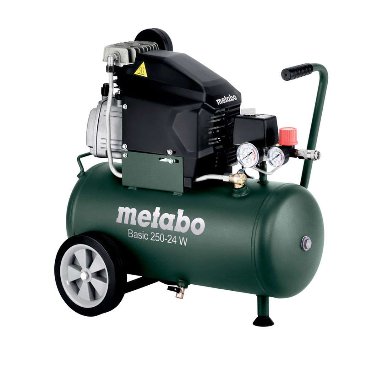 Metabo Basic 250-24 W je kompaktní, výkonný a odolný olejový kompresor, který je skvělou volbou pro širokou škálu aplikací – od pneumatických nástrojů, foukání, plnění pneumatik až po přibíjení a lepení. Díky snadné manipulaci, regulaci tlaku, ochraně proti přetížení a robustní konstrukci je spolehlivým nástrojem pro každodenní použití. 🛠🔧