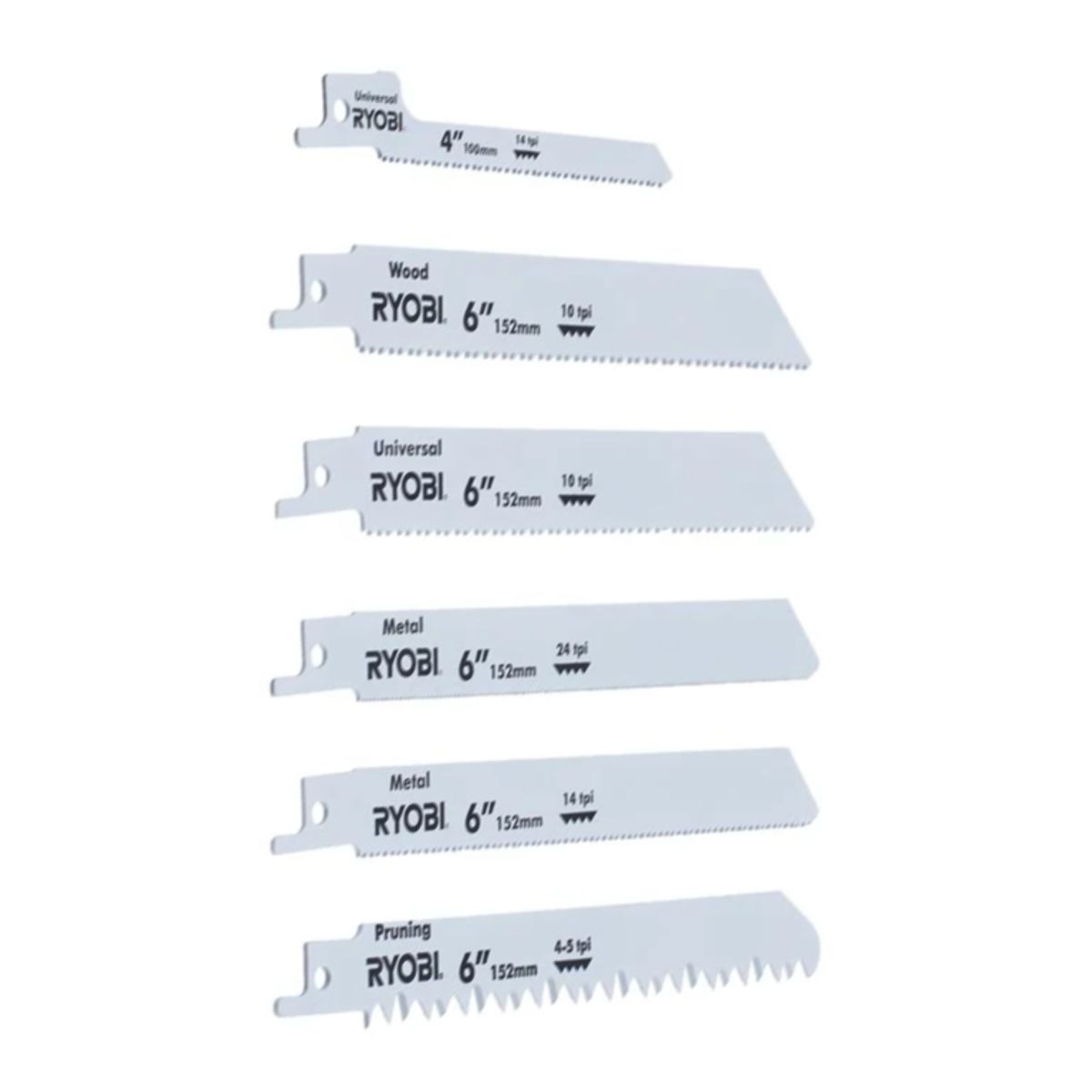 Sada pilových plátků RYOBI RAK06RB obsahuje šest vysoce kvalitních plátků určených pro různé řezací aplikace. Tyto plátky jsou kompatibilní se všemi šavlovými pilami a nabízejí vysoký výkon a dlouhou životnost.