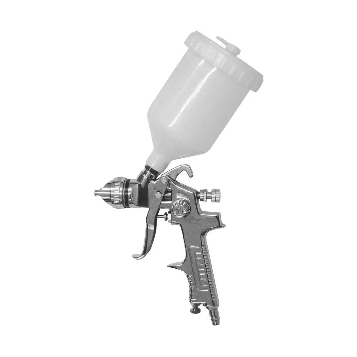 - Nylonová vrchní nádobka s filtrem: Odolná a snadno čistitelná nádobka pro nátěrové hmoty s filtrem pro zajištění čistoty nástřiku.