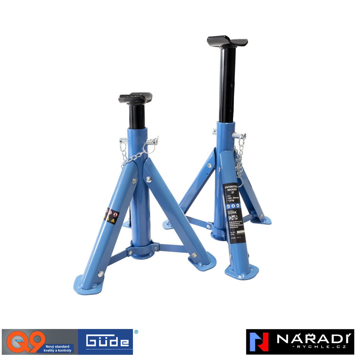 Sada stavitelných podpěr Güde 3T s nosností 3 000 kg a výškou 288–425 mm pro bezpečné zajištění vozidel a strojů.