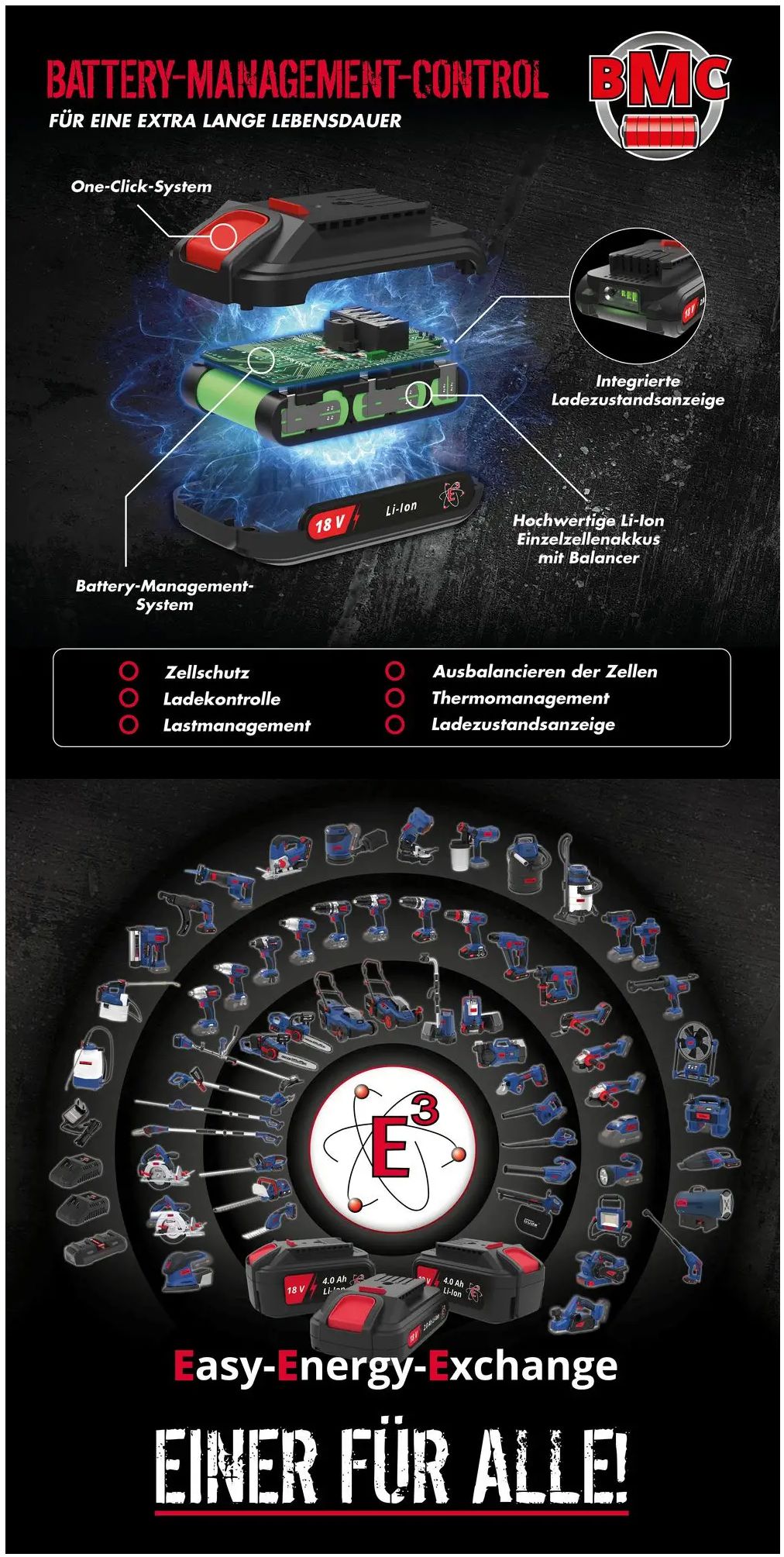 ✅ Všestranné použití díky kompatibilitě s ostatními nástroji řady 18V E³.