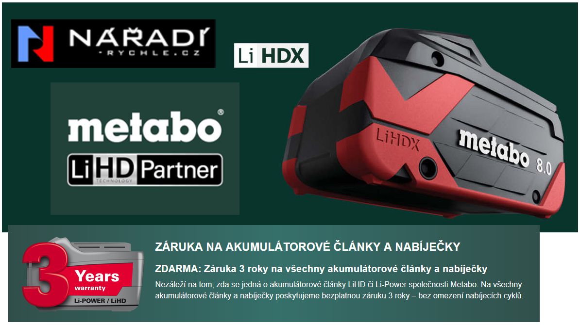Aku set 2×8 Ah LiHDX, ASC 290 Metabo, 18V, metaBOXSkladem - expedice do 14:00 (po-pá, mimo svátky)8 830 Kč/ ks7 298 Kč bez DPH