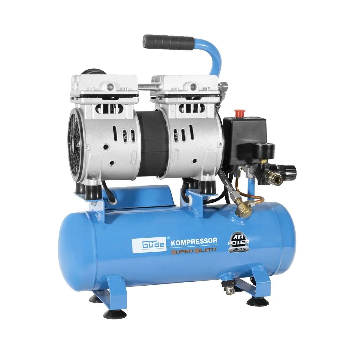 Güde Airpower 105/8/6 SILENT je mimořádně tichý a kompaktní bezolejový kompresor, ideální pro domácí dílny, interiérové prostory i profesionální prostředí jako jsou kosmetické salony nebo kanceláře. Díky nízké hlučnosti pouhých 59 dB a bezolejové technologii nabízí čistý provoz bez nutnosti složité údržby. Spolehlivě zvládne huštění pneumatik, nafukování, airbrush i práci s menším pneumatickým nářadím.