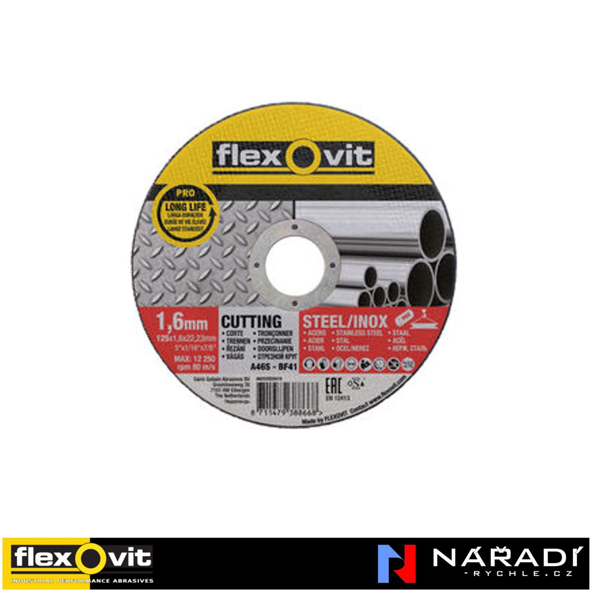 Kotouč řezný na ocel rovný Flexovit 125x1,6 mm