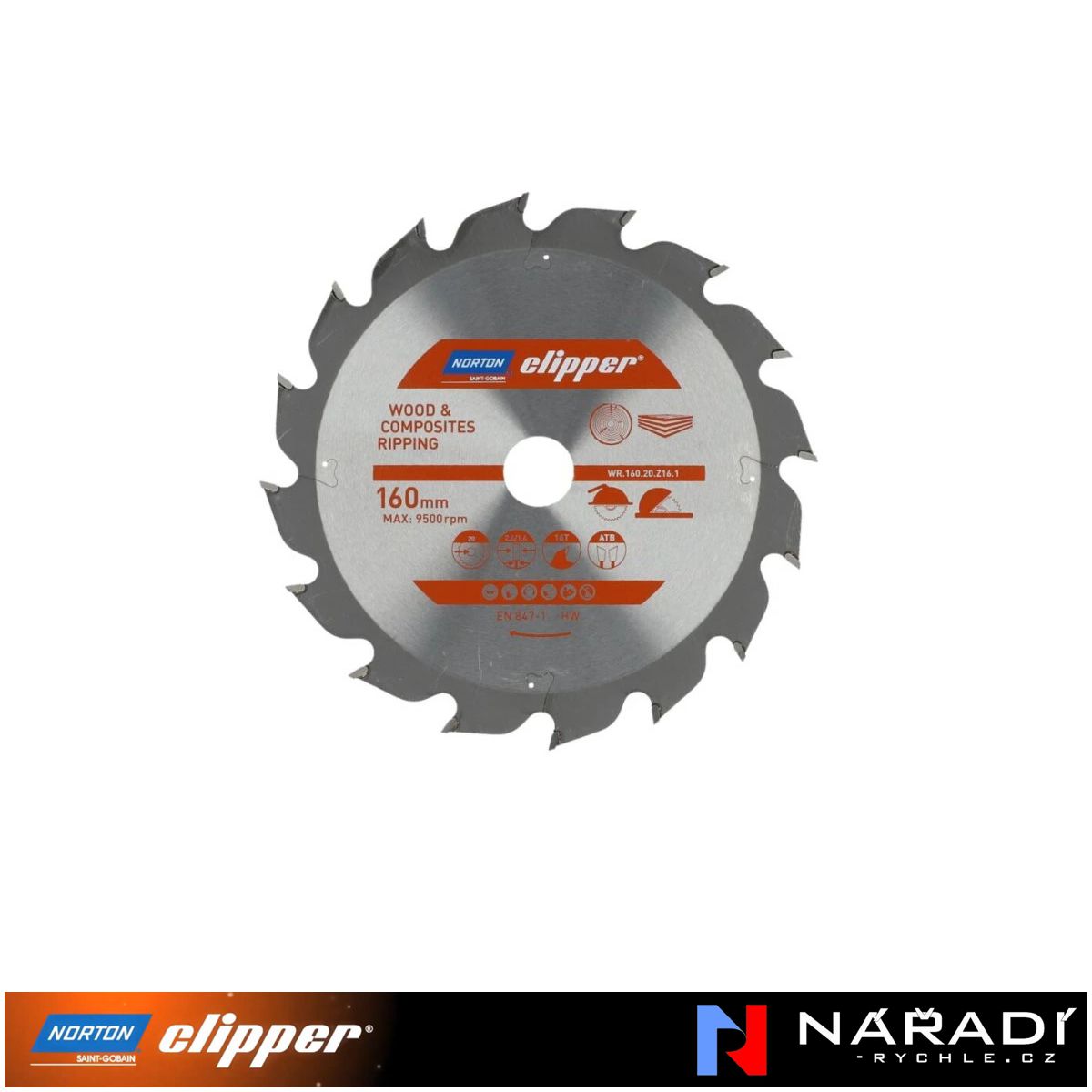 Pilový kotouč Norton Clipper, 160x20 Z16 Wood rippingSkladem - expedice do 14:00 (po-pá, mimo svátky)199 Kč/ ks164 Kč bez DPH