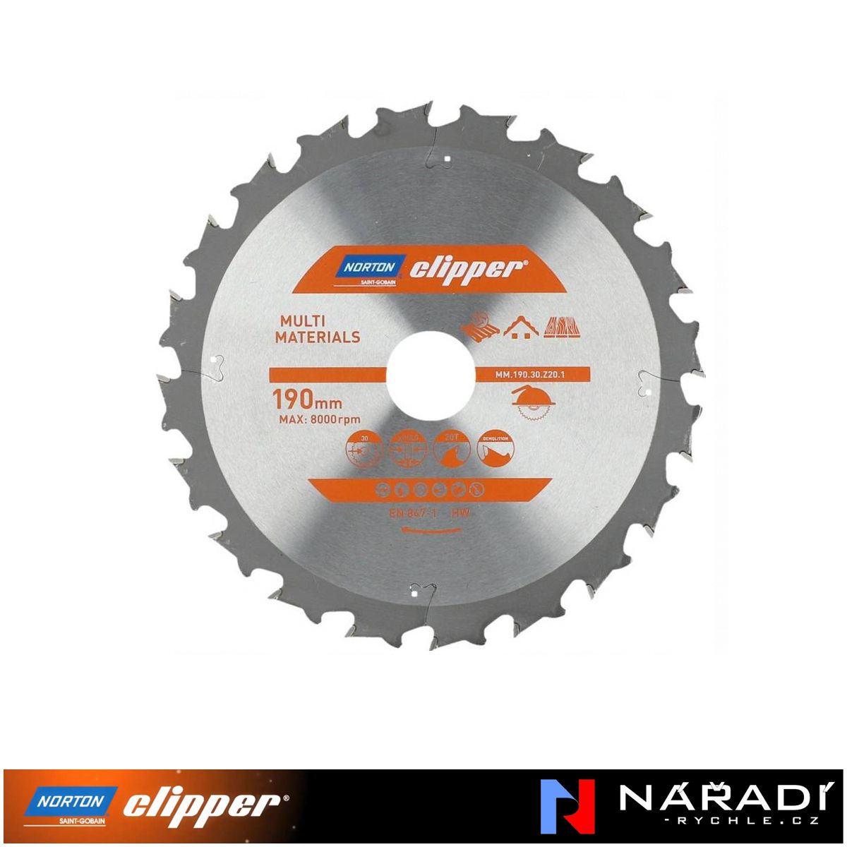 Pilový kotouč Norton Clipper, 190x30 Z20 MultimaterialSkladem - expedice do 14:00 (po-pá, mimo svátky)320 Kč/ ks264 Kč bez DPH
