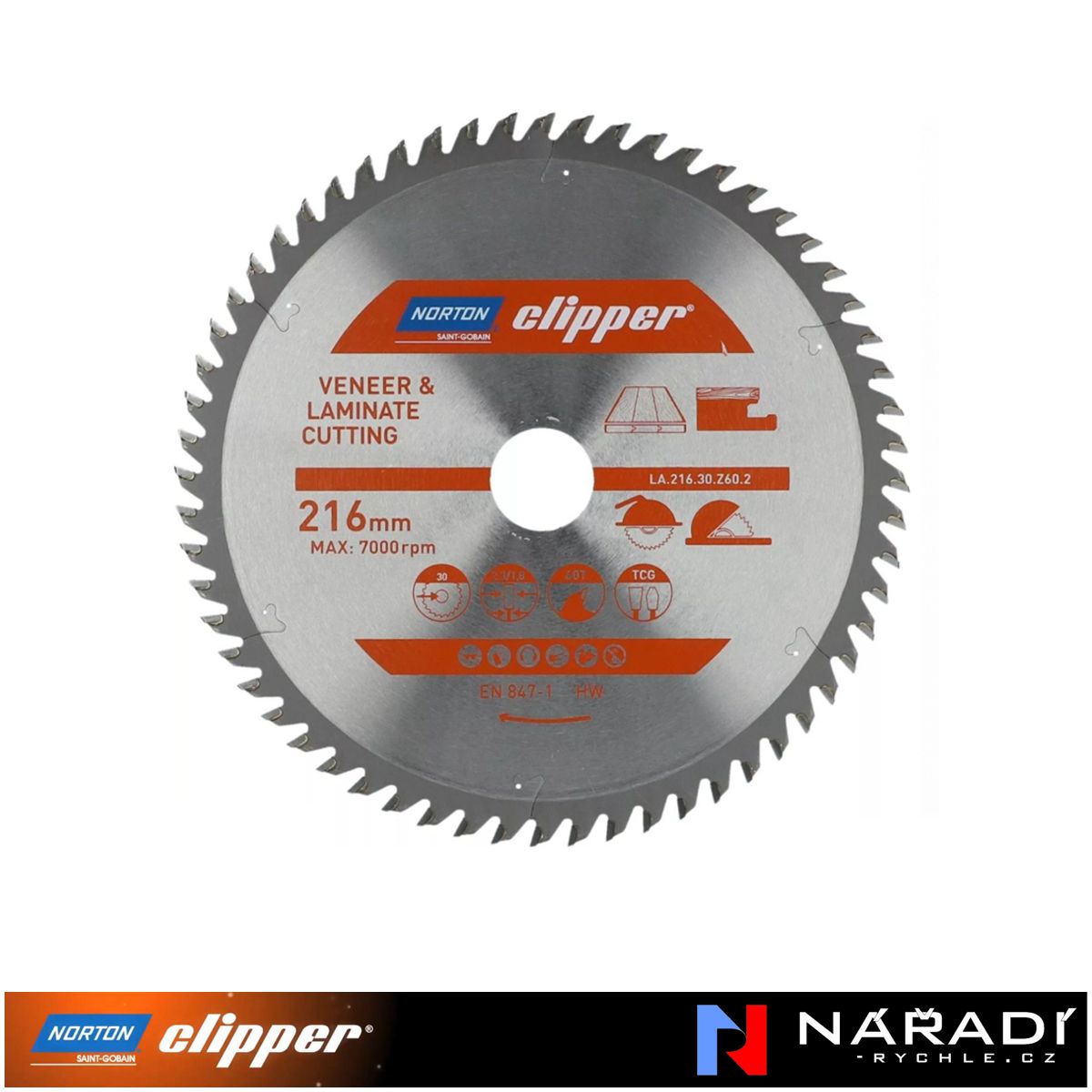 Pilový kotouč Norton Clipper, 216x30 Z60 LaminateNení skladem :-[650 Kč/ ks537 Kč bez DPH