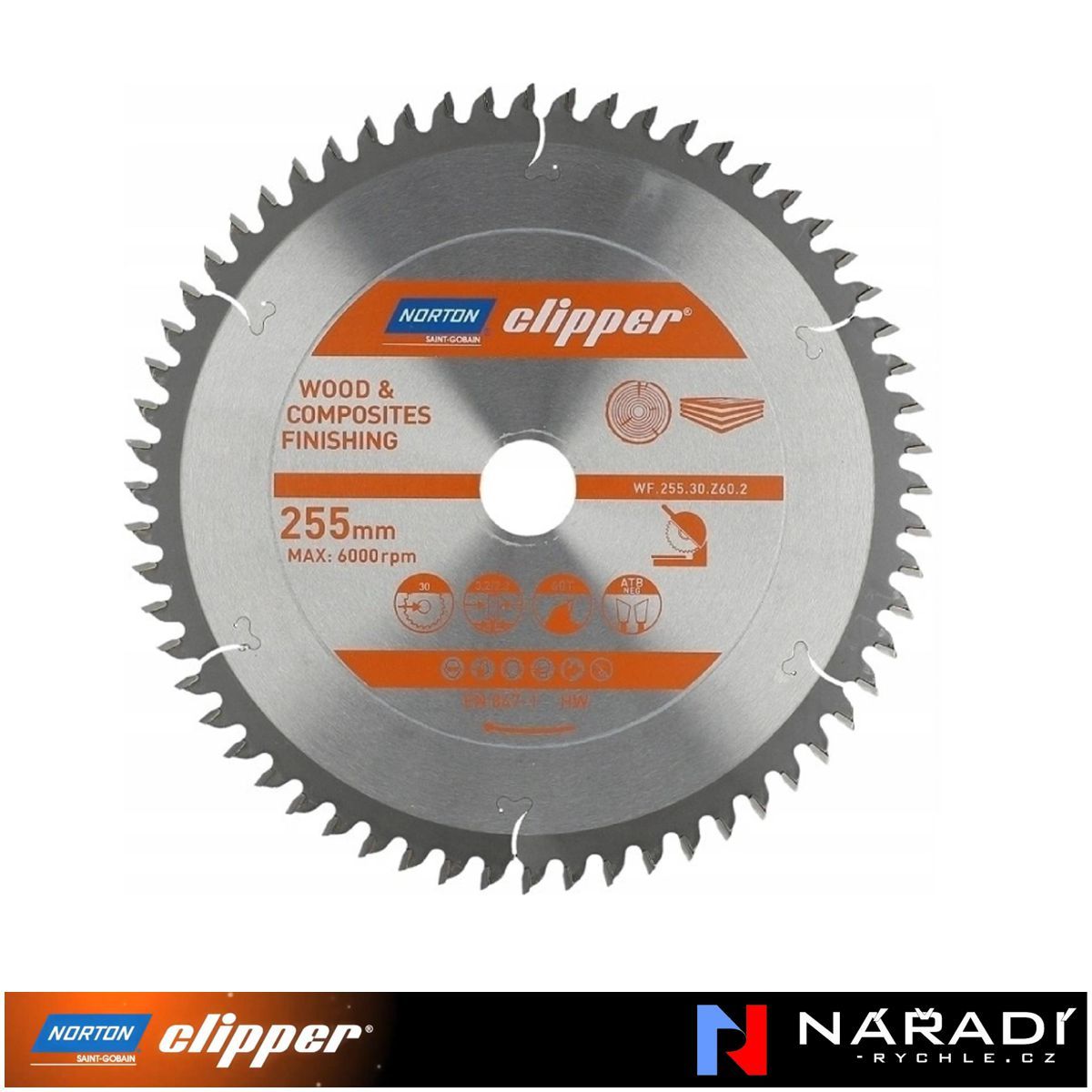 Pilový kotouč Norton Clipper, 255x30 Z60 Wood